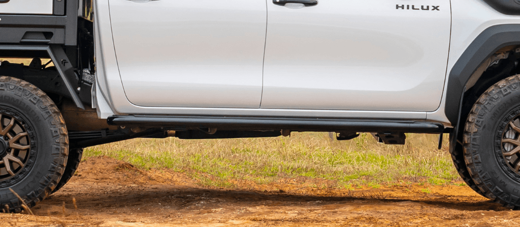 ChangeThe Summit side step and return assembly with black tread provides integrated protection for the Toyota Hilux as part of ARB’s Summit side protection range. This configuration combines the Summit Side Step Section and the Summit Side Step Return to help shield the vehicle’s doors and sills from damage commonly encountered during off-road driving.